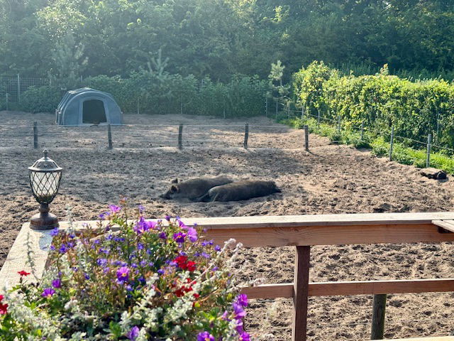 Wij zijn Arthur en Monique en sinds 2020 hebben wij onze eigen kleine, duurzame boerderij 'De Wijckse Hoeve' opgericht. Wij houden ongeveer 30 Mangalitza varkens en verschillende soorten pluimvee zoals kippen, kalkoenen en eenden. Een aantal jaren geleden konden wij een strandhuisje overnemen die te breed was voor het strand. We hebben het huisje in onze vrije uurtjes flink aangepakt, alles gerenoveerd en vernieuwdm], alles weer lekker fris dus.